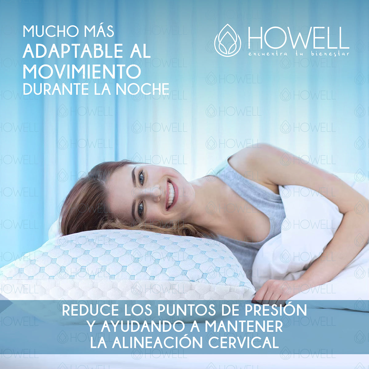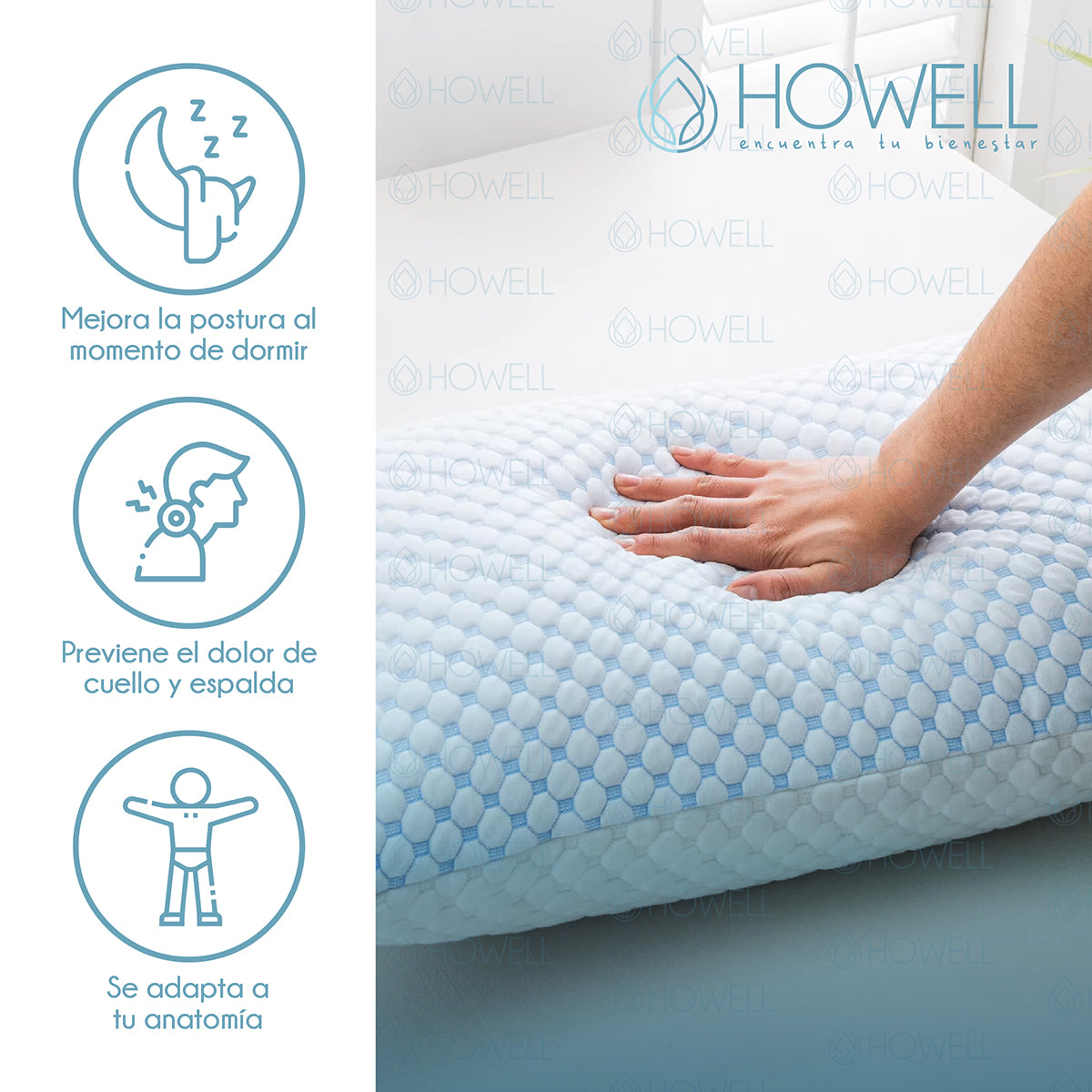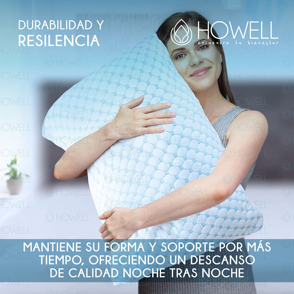 La almohada viscoelástica cloudfeel de Howell está diseñada para brindarte el equilibrio perfecto entre soporte, adaptabilidad, frescura y tecnología inteligente con materiales de calidad para mejorar tu bienestar.