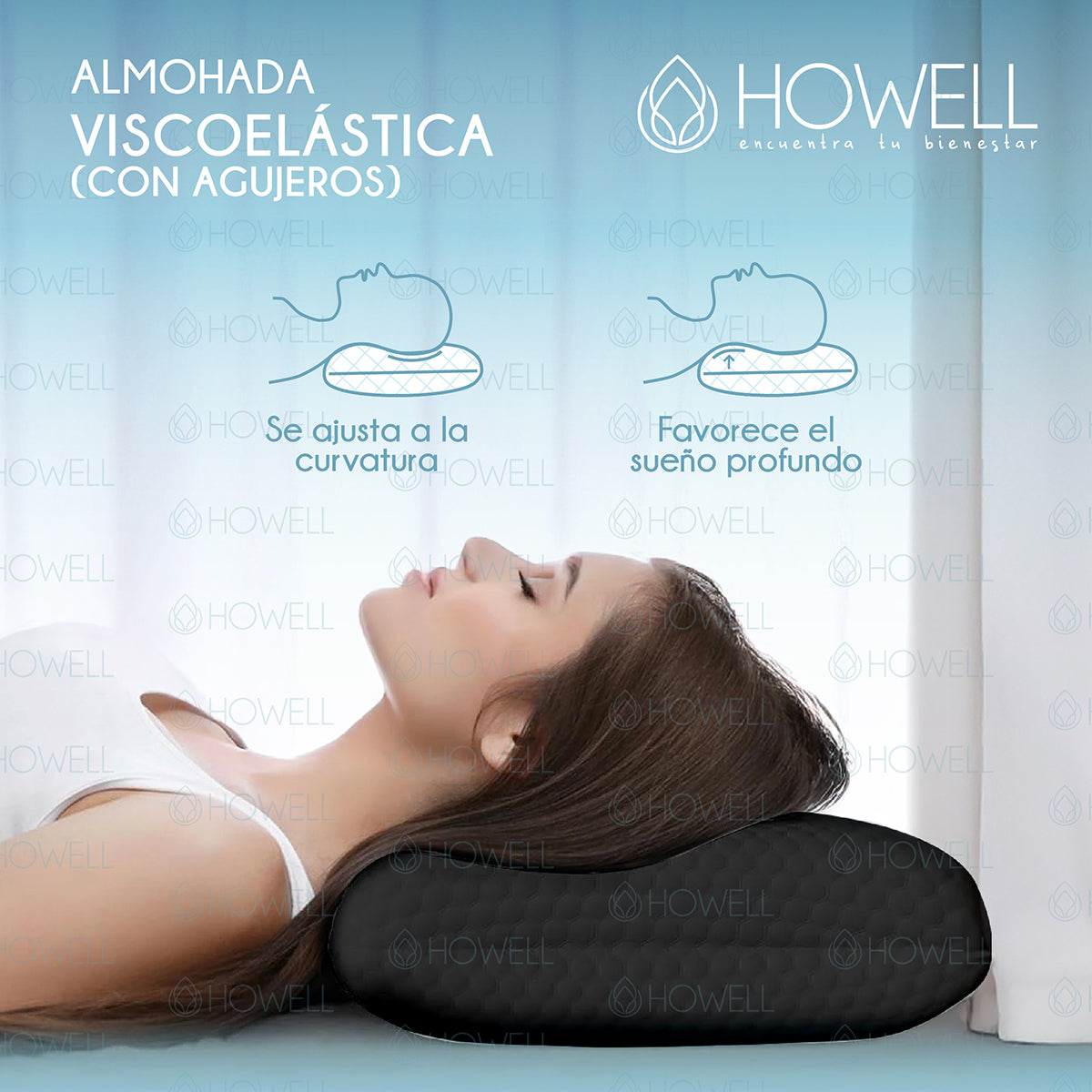 Tu mejor descanso empieza esta noche. Prueba la Almohada Viscoelástica Howell y despierta sin dolor, descansado y listo para el día.