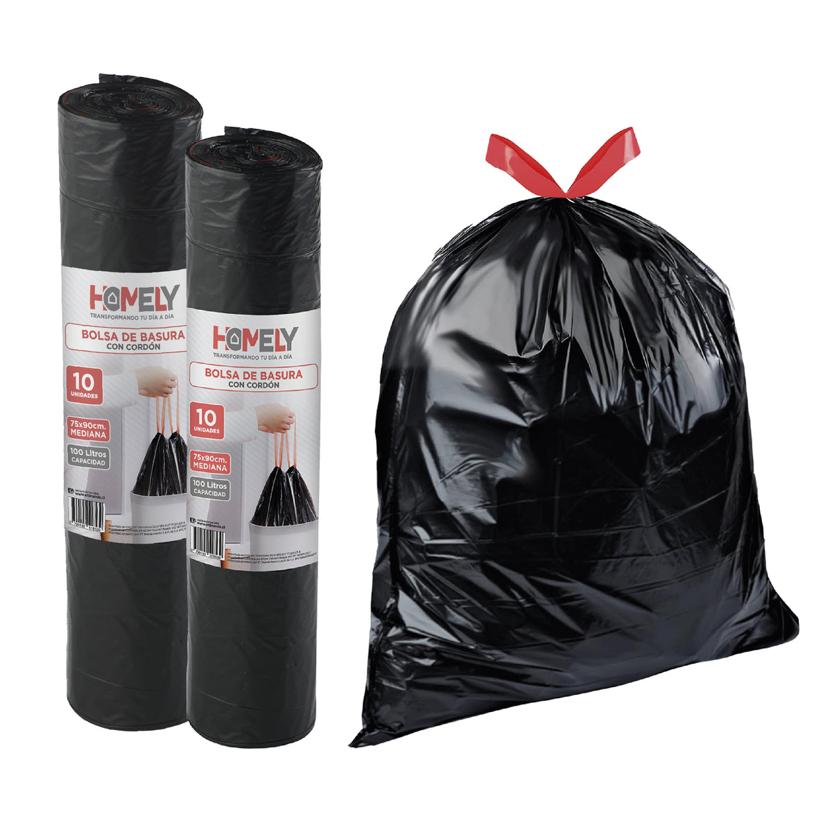 Bolsas Basura 75x90cm Con Cordon 20U Homely 100L Resistente