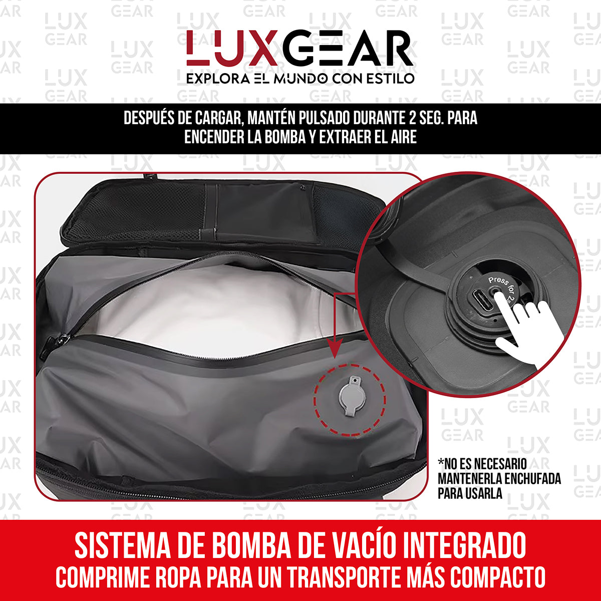 Viajar con la Mochila Bomba Al Vacío Luxgear 900D significa olvidar las filas para documentar y las tarifas de exceso de equipaje. Es tener la libertad de llevar tu armario completo de forma compacta, segura y profesional.