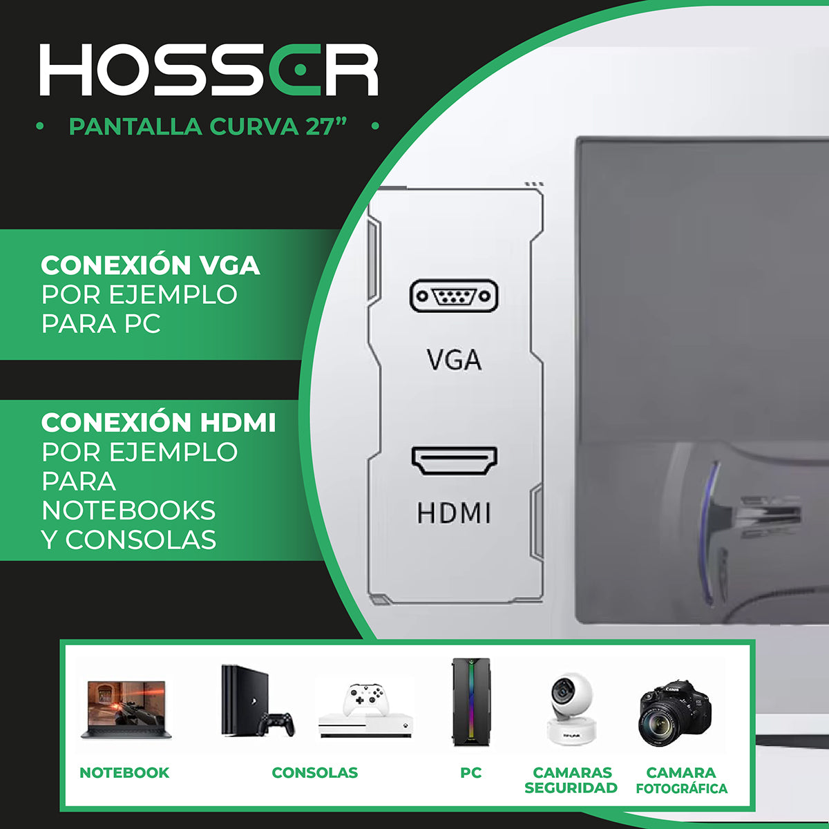 ¡Domina el Juego con el Monitor Gamer Curvo Hosser de 27" FHD, diseñado para ofrecerte una experiencia de juego inmersiva y envolvente!